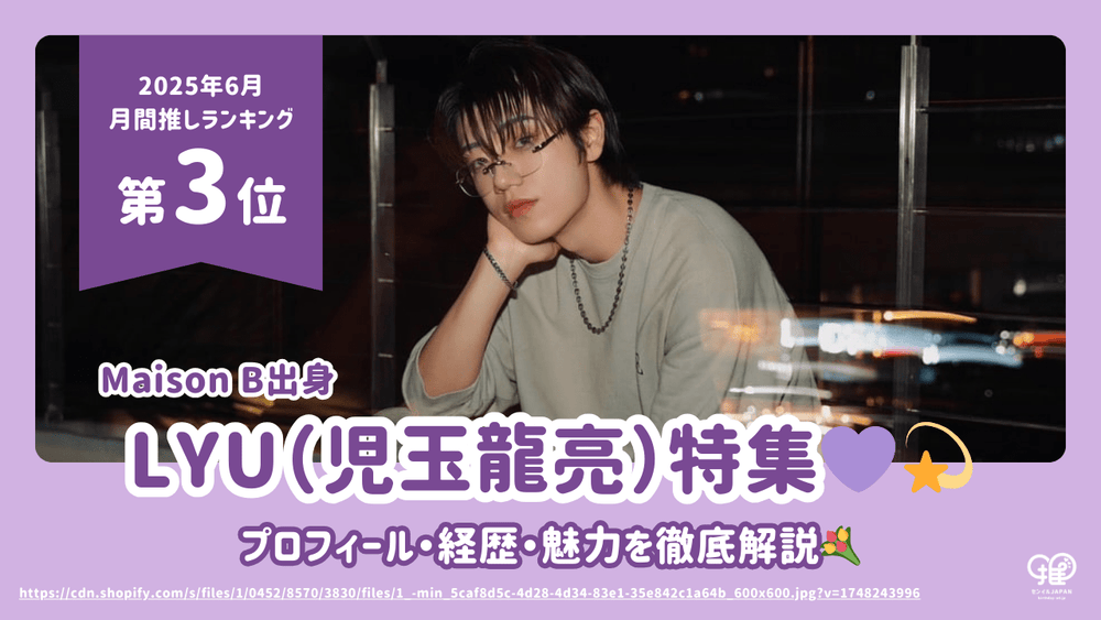 คราวนี้คุณสมบัติพิเศษเกี่ยวกับ Lyu (Kodama Ryuryo) อดีตสมาชิกของ Maison B ซึ่งได้รับเลือกให้เป็นอันดับสามในการจัดอันดับสำหรับเดือนมิถุนายน 2568ฉันส่งคุณไปแล้ว♪