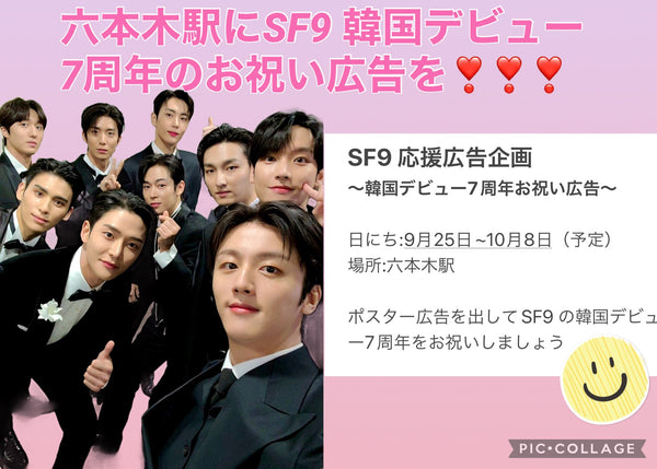 応援広告はSF9 デビュー日である10月5日前後に六本木駅に掲示する予定です。