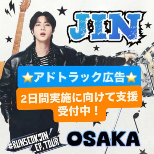 ●🐹ทัวร์โซโลเวิลด์เดี่ยวครั้งแรกของจิน-คุงจะแสดงในโอซาก้าซึ่งเขาสามารถเพลิดเพลินไปกับความตื่นเต้นด้วยการวิ่งแทร็กโฆษณา LED รอบ ๆ สถานที่จัดงาน! - -